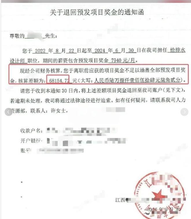 积木新闻记者 郭毅 10月10日,有网友发帖称,江西某工程咨询设计公司要求辞职多年的员工返还工资,不退还追究员工的责任。公司需要辞职多年的员工恢复工资。该在网上发布图片的人士称,公司已向多名辞职员工发出通知,要求返还奖金。 “所谓奖金,其实就是工资,是设计师一行一行划出的工资标准。没想到,机构设计却说钱多了,要求这些工作人员退钱。”贴出的图片海报显示,9月30日,江西九宁设计咨询公司发布《关于返还预付工程奖金的通知》称,2022年8月22日至20日的员工于2024年6月30日在我公司从事供水、运河制造工作,其工资为包含每月7940元的预付奖金项目。根据公司会计核算,员工离职前必须领取的项目奖金不足以支付所有预付款项目奖金。核算差异为68,154.72元。要求员工在接到通知后30天内,将差额6万元以上的部分补回项目项目奖金。若逾期未处理,公司将继续依法追究责任。 10日下午,涉事公司员工在极目新闻中获悉,员工要求返还的奖金属于前期奖金项目,在此前签订的劳动合同中均有注明。此前支付给员工的工资包括预支项目奖金,这些奖金预支给“考虑日常成本费用”并“明确写在”工资单上的公司员工。由于员工返工时部分工程尚未修复gn,目前固定用于项目的资金不足以支付当时的员工工资,因此应该收回。之所以需要追回6万多元,是因为该离职员工参与的项目不止一个。针对一名在网上发帖举报此事的员工,该公司工作人员表示,他们已报警并请律师保护Aof公司的权益。极目新闻记者注意到,涉案公司位于江西省南昌市。 10日下午,南昌市劳动监察局工作人员表示,奖金不属于劳动监察局内部,建议员工通过法律途径或劳动仲裁来维护权益。公司要求员工返还工作中赚取的部分工资作为“预支项目奖金”合法吗?河南泽金律师事务所主任傅健认为,根据《中华人民共和国劳动法》第五十条规定,工资必须按月以货币形式支付给劳动者本人。职工不得无故克扣、拖欠工资。如果劳动合同中明确规定了低工资高奖金制度,且项目的预付奖金是工资的一部分,那么制度设计就不能在没有法律因素的情况下提取初始奖金。如果公司以工程造价不足为由退回奖金部分,必须评估合同或公司政策法规是否有相关规定。如果没有达成协议,公司的行为可能会导致工资克扣,这不符合劳动法。此外,离职员工还需要确认劳动限制是否已过。如果劳动仲裁时效未满,员工可以先安排公司尝试解决问题。协商无果后有效时,EMPsLeyado应准备可以证明劳动关系和工资的证据,如劳动合同、工作证明、工资单、银行流水单等,向仲裁委员会申请仲裁。如果您对仲裁结果不服,也可以在指定期限内向人民法院提起诉讼。 (来源:极目新闻)