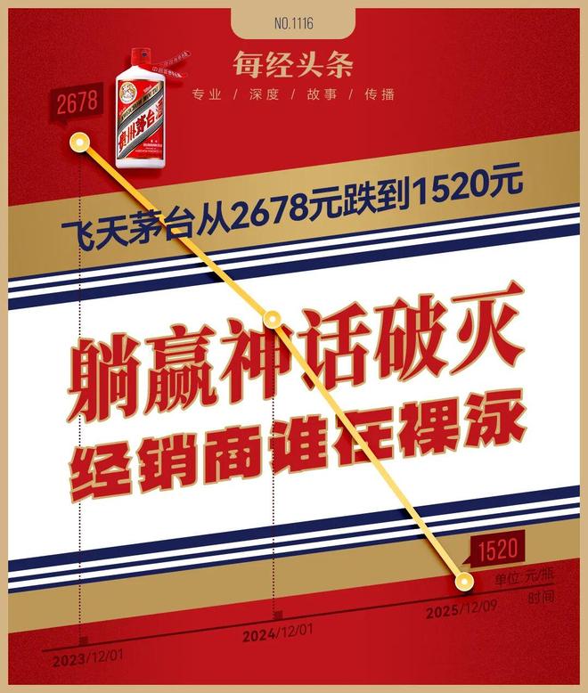 12月9日,飞天茅台批发价(本次批发视为行业同行调整价)降至1520元/瓶(散装瓶价,下同),接近官方指导价1499元/瓶。在此背景下,市场上传出“茅台已停止向卖家供货”的消息。外界听后不禁思考:厂家是在“控货护价”吗?不过,《每日经济新闻·剑金酒业》记者近日从不少卖家处了解到,目前停工的真正原因是商家已经完成了合同规定的2025年销售任务,厂家自然不需要再发。 “控货”只是一时的猜测,但多年来的拒绝已成为现实。 2023年12月,飞天茅台批发价高达2678元/瓶。但直到今年12月9日,很多第三方y报价平台给出的批发均价约为1520元/瓶,两年下降约43%。但第三方平台报出的价格并非终端价格。买家在电商平台上看到的价格从1600元/瓶到1850元/瓶不等。至此,分红的“躺赢时代”结束了。一些商人还沉浸在过去的“躺着赢”的无为之中,而另一些商人则清醒地意识到“茅台搬运工”的角色将成为过去。摆在我们面前的只有两个问题:它会再次下跌吗?如何打破僵局? “煮青蛙”的拒绝,让市场看到了创业者陷入困境的现状:只要停留在“综合成本线”上,就不会亏本。深耕葡萄酒行业20多年的李宏达是茅台酒业务的负责人。在讨论茅台酒价格下跌时,他似乎埃德冷静。 “事实上,茅台价格的拐点从4年前就已经出现了。”李宏达回忆说,他可能是最先注意到这一变化的卖家之一。 2021年至2022年,飞天茅台批发价稳定在2600元/瓶以上,一度达到3000元/瓶以上。图表中的数据为四个第三方报价平台提供的飞天茅台散装瓶平均批发价。特别提示:相关数据仅供趋势参考,并非官方权威发布。 “2022年到2024年上半年,价格降幅不大,2024年初还能卖到2700元/瓶。”李宏达记得,今年经销商群体才真正开始感受到压力,批发价从年初的2300多元/瓶一路下滑。近两年的缓慢下滑,犹如热水煮青蛙,一度让市场认清了趋势s。直到2025年,这个行业才真正起飞。目前,市场最关心的问题是“飞天茅台价格是否跌破官方指导价1499元/瓶?”李宏达对此没有直接回应,而是谈到了“三条线”。 ▌第一行是出厂价。 2023年11月1日起,飞天茅台执行出厂价1169元/瓶,较此前969元/瓶上涨20%。值得注意的是,2023年下半年,泸州老窖、舍得酒、水井坊等白酒企业均上调了产品出厂价。五粮液、剑南春也对2024年春季重点产品价格进行了调整,形成了全行业的调价热潮。第二行是官方指导价,1499元/瓶。这个价格对于消费者来说具有很强的象征意义。 ▌ 第三行是经销商的“c“综合成本线”。这是一个不为公众所知的关键指标,但却直接决定了经销商的盈亏。李宏达解释说,从表面上看,茅台经销商的进货成本因素是出厂价。但由于茅台的销售模式,企业家不仅要卖飞天茅台,还要负责其他产品的销售,如特级茅台、生肖茅台、文创酒等。这些产品大部分都是茅台酒。因此,经销商的综合成本线实际上是包括飞天茅台等产品后的成本价,以李宏达公司为例,飞天茅台公司目前的综合成本线约为1700元/瓶,而飞天茅台公司的销售价格约为1650元/瓶,这意味着每售出一瓶就会造成损失。但这并不意味着如果50元。a的价格会继续下跌,你肯定会亏损。 “综合成本线并不是一个固定值,会根据经销商的经营情况而变化,主要影响因素是其他捆绑产品的销售比例。”李宏达表示,如果能够减少或推迟其他产品的购销活动,综合成本线就会相应降低。也就是说,即使飞天茅台的市场价格下降,只要最终销售价格高于调整后的综合成本线,创业者就不会亏损。另一位茅台商人徐越也证实了李宏达的说法。徐跃告诉记者:“卖浦茅(飞天茅台)肯定是有利可图的,但其他(产品)损失太大了。以高品质茅台为例,经销商价(出厂价)为3299元/瓶,目前市场价也在2000元/瓶左右。零售价(出厂价)e) 15年茅台酒5999元/瓶。记者了解到,徐越提到的15年茅台酒的市场价格低于出厂价,以前的“茅台搬运工”躺着也能赚钱,现在每瓶可以多卖50元,这意味着他们的生活空间更大。无论是行业内还是行业外,茅台卖家都曾经是一个拥有自己的“红利混合物”的特殊群体。“市场价”与“出厂价”之间的巨大差价“价格”让他们一下子就“赢了”。在李宏达看来,当时卖家的角色就是“茅台搬运工”。工作很简单,每个月按时把钱交到茅台酒厂,然后卖掉就可以赚大钱。“想买酒的人络绎不绝,我们接不到电话。”因此,公司不仅需要跑客户,也不需要太多的销售人员。“可以做钱躺着,谁想赚钱站着!”李宏达也公开表示,自己当时其实也是受益者。“我几乎不去公司。 “我每个月就看账目,看到钱进来了,环游世界不是很舒服吗?”他回忆道。然而,随着中国葡萄酒行业进入存量竞争期,加上其他诸多压力,支撑股息扩散的两个主要领域——马六甲市场需求和稳定的市场价格将逐渐动摇。当一些企业家还沉浸在过去“躺着赢的不作为”时,另一位企业家却清醒地认识到,“躺着赢的时间”已经很长了。过去的“搬运工”角色正在让他们逐渐失去市场竞争力,那么,这个答案只能在2024年中期,贵州茅台提出“从卖酒到卖生活方式”。还要做“生活方式的提供者”,比如营造场景、提供情感价值等。仅2025年11月的一周内,川商们就大力举办18场品鉴会、6场线下推广、2场文化直播、2场行为培训,用这样高频度、多维度的活动拉近与消费者的距离。积极拥抱电商,从传统渠道