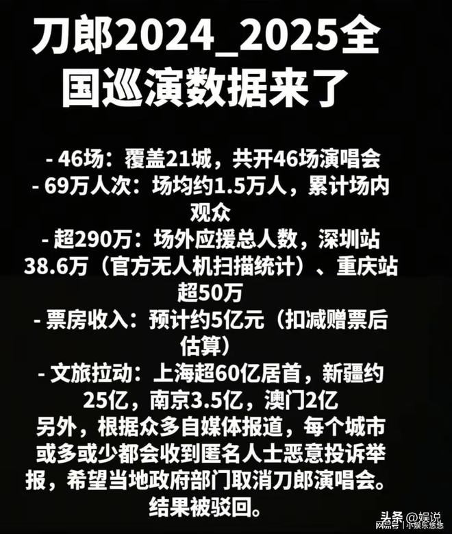 46场演唱会,69万张门票,每场演唱会售出1.5万张门票,其中包括新疆乌鲁木齐等冷门城市!艺术家想要获得成功,必须有足够多的经典作品、足够完美的角色、以及足够多愿意为之买单的粉丝!在这个以90后、00后为消费主体的时代,很难想象老人让孩子帮自己买票、买公交车票、订酒店,来完成多年前、甚至几十年前的梦想!但刀郎做到了,每场演出都爆满。场内场外有超过10万人唱歌、跳舞、喊叫、嘲笑他。尤其是乌鲁木齐,大街小巷就像八公年,到处都是人,到处都是表演(DAO粉丝组织的小表演)。它很有活力! Ano ang mas Hindi inaasahan na ang Daolang ay Hindi lamang nakakaapekto sa kanyang sariling mga tagahanga, Kundi pati na rin ang mga kakawaran ngTurismo ng Iba't ibang mga lugar 的文化。他们正在竞相邀请刀郎到当地表演! Sa kaibahan,与摇滚歌手 Na si Wang Feng,Na palaging pinupuri bilang“kalahati ng industriya ng musika ng Tsino”,ay nakatagpo ng isang malamig na satwasyon pagdating sa isang konsiyerto! 10月25日,汪峰在哈尔滨举办了今年首场演唱会,门票共计6000张。 Kahit na sinimulan ng Damai.com 和预售 nang higit sa isang buwan nang maaga,mayroong isang nakakahiyang eksena ng“hindi lahat ng mga tiket ay nabili sa araw bago ang konsiyerto”!令人惊讶的是汪峰在协奏曲中的表现却很困难。他无法唱出高音,低音也跑调。当他唱不准时,他把麦克风扔到观众席上!演唱会结束后,长春日报、杭州日报等官方媒体纷纷调侃汪峰!在以前,这是不可想象的,因为汪峰从出道以来,一直都是领先者。家庭娱乐中的g数字。他很有名,有成就,地位很高。尽管他处于慵懒的状态,但很少有媒体对他进行报道!细节证明,球员所在的赛季决定一切。只要你品行不好,品德配不上你的职位,你就必然会受到排挤!一边是刀郎的六十九万观众,每一场演唱会都顺利举办,取得圆满成功。另一边,确实是王峰的6000个业主,正在苦苦卖票,处于滑溜溜的状态,而且还被官媒连线,孰优孰劣,一目了然!二十年前,汪峰可以在记者面前雄辩地说,刀郎现象是国内娱乐圈的悲剧。二十年前,汪峰在(开演唱会)做得最好的时候转身。让人不禁感叹:观众数量差距巨大王峰终于意识到,刀郎是一座他永远无法逾越的大山!