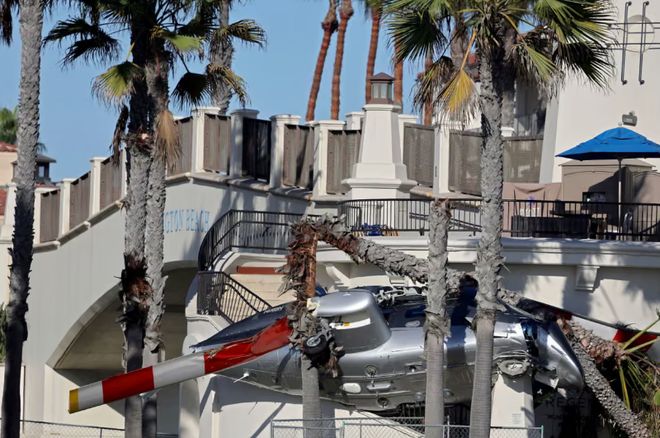 来源:环球网 【环球网报道记者姜爱玲】据英国《卫报》报道,当地时间11日下午,一架直升机在美国加州亨廷顿海滩附近的道路上坠毁,造成5人受伤入院治疗。其中两个人正在骑马。他们是从救主的毁灭中被拉出来的。当地时间11日,一架直升机在加利福尼亚州亨廷顿海滩坠毁,被困在棕榈树和台阶之间。资料来源:外媒报道,视频描述中引用照片称,涉事直升机在飞越海滩时突然失控。扭动了几下后,它开始下落,然后向海滩边俯冲,最后粘在了沿海公路旁棕榈树和台阶之间的狭窄空间里。这激动人心的一幕被不少海滩游客看到。坠毁的直升机与定于周日(12 -12)举行的筹款活动有关。事故原因尚未确定恩宣布。